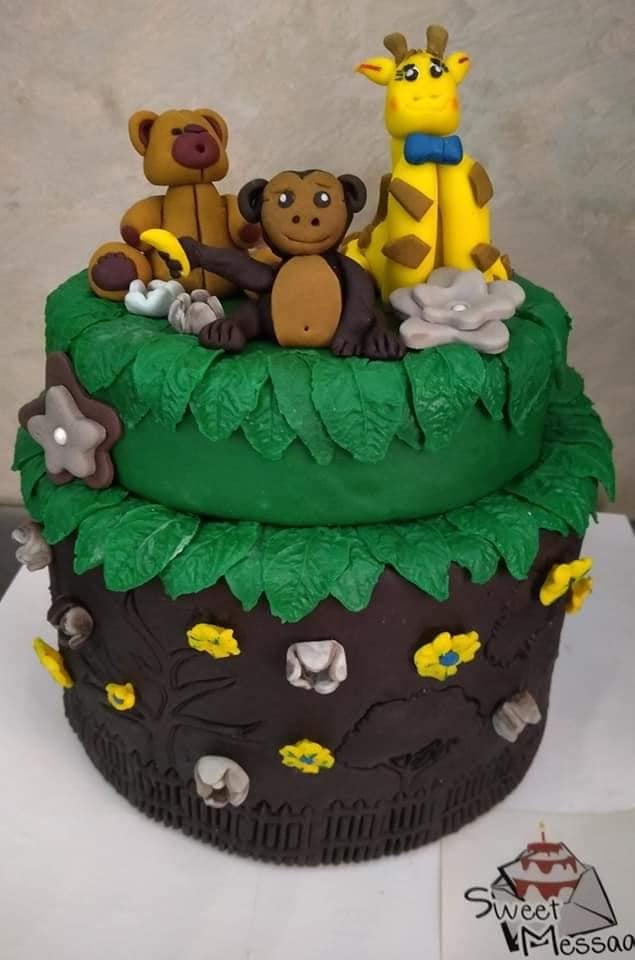تورته حيوانات الغابه+مجسمات من السكر