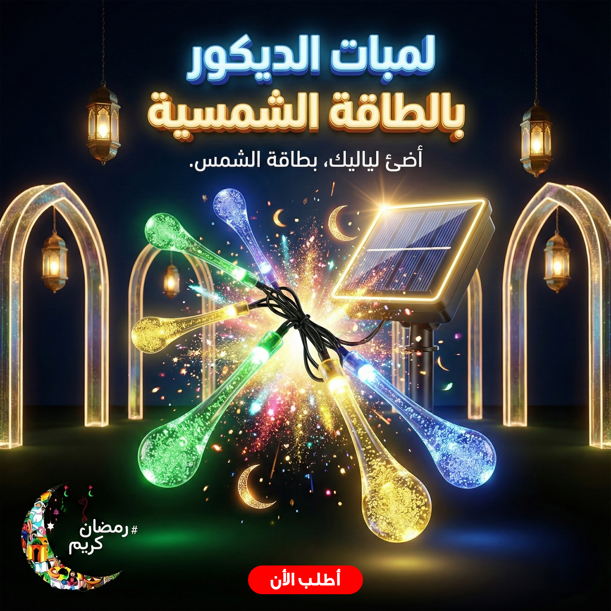 استمتع بإضاءة أنيقة وموفرة مع شريط لمبات كريستال بالطاقة الشمسية ✨
