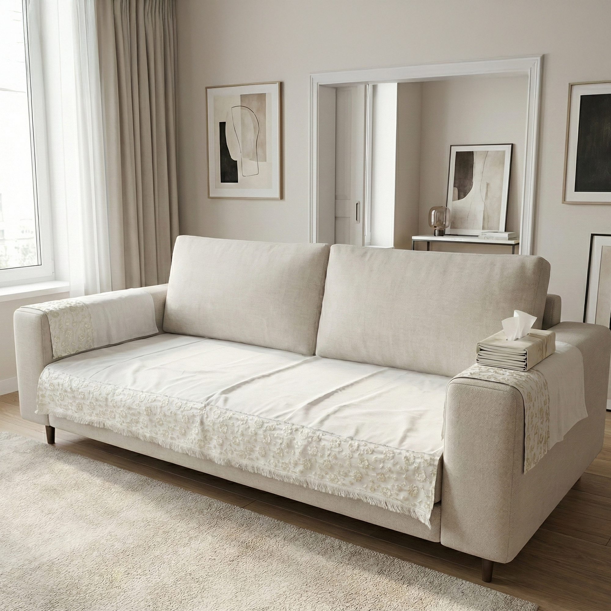 حوّلي كنبتك لركن راقٍ بلمسة رمضانية عملية! الطقم يجمع بين حماية الكنبة بالكامل وبين مفرشين جانبيين (مناديل) بإطار مطرّز فاخر يمنح شكل ديكوري مميز. 🔸 مكوّنات الطقم: قطعة كبيرة لفرش الكنبة بالكامل خامة ناعمة – تصميم رمضاني أنيق – حماية من الاتساخ والانسكابات. 2 مناديل للجانبين تُستخدم فوق ذراع الكنبة أو كقطعة ديكور تزيد الفخامة وتمنع الاحتكاك المباشر. 🔸 المميزات: خامة ناعمة وثابتة لا تنزلق. تصميم راقٍ يناسب كل أنواع الديكور. يحافظ على الكنبة ويحميها من الاتساخ. سهل الفك والغسيل. مناسب للضيافة واستقبال رمضان والأعياد. 🔸 مثالي لـ: ✔ الصالون – غرفة المعيشة ✔ حماية الكنبة الجلد أو القماش ✔ ديكور رمضاني مميز ويضيف لمسة فاخرة للمكان